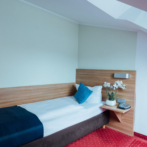 Teilweise sind die Einzelzimmer mit einem 140 x 200 m breites Bett, ruhig im 5ten Stock, großes Fenster zum Öffnen, Flach-TV, Tisch, Stuhl, Schrank. Häufig werden Doppelzimmer zur Einzelnutzung auch angeboten. Mit einem hauseigenem Aufzug erreichbar.